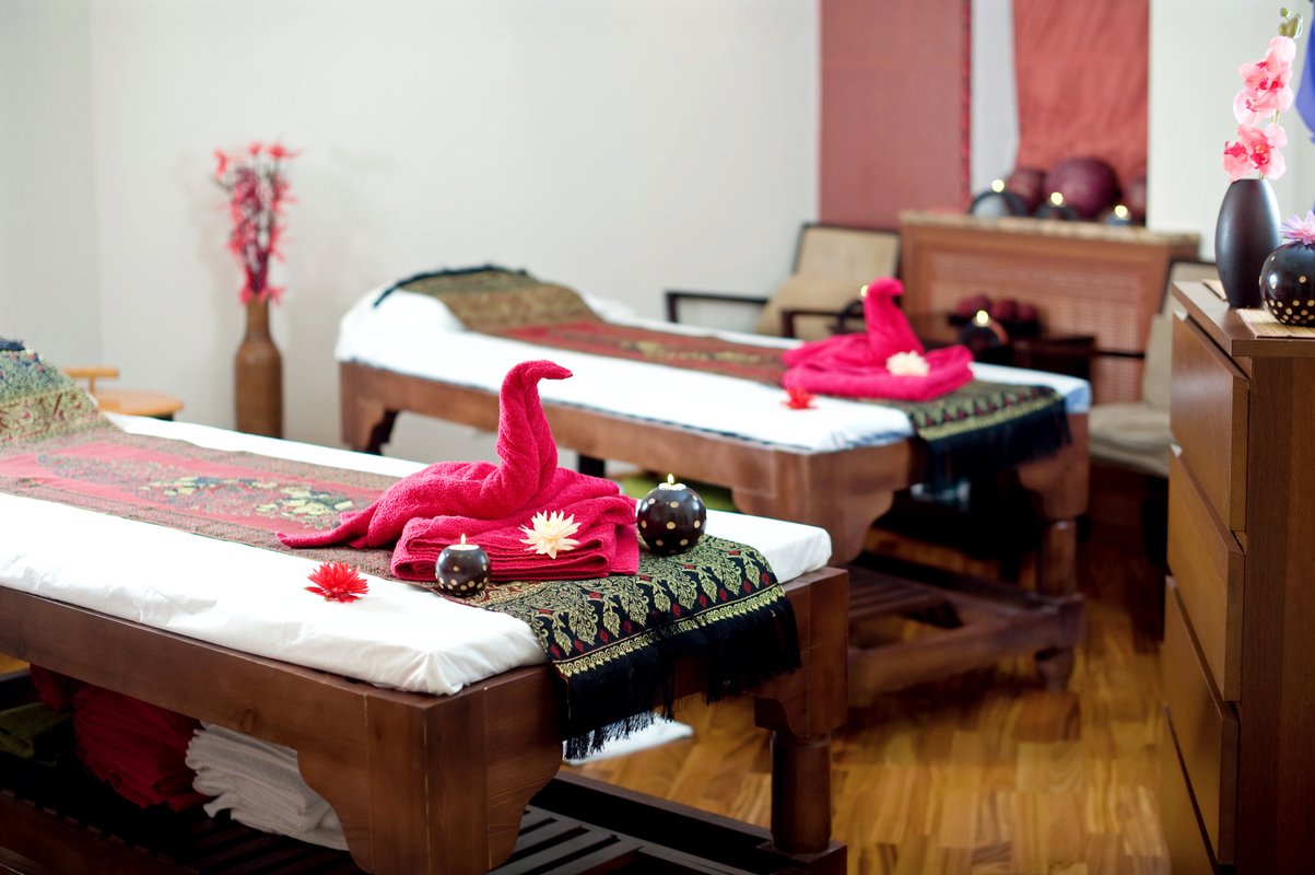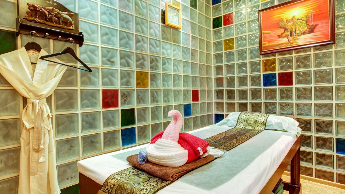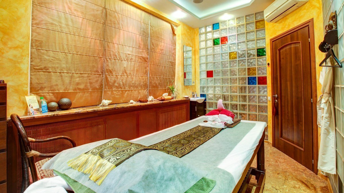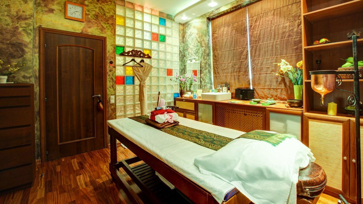 Здесь вы можете сделать тайский массаж. Из-за особенностей воздействия на организм его часто называют пассивной йогой: он так же делает суставы более подвижными, используется для придания телу гибкости и избавляет от телесных зажимов, при этом заряжая энергией. Проводя общий тайский массаж, мастера воздействуют на многочисленные точки на руках и ногах, которые отвечают за наше здоровье, в результате чего достигается его терапевтический эффект.